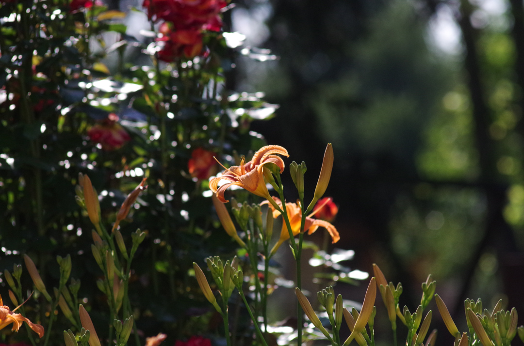 Sad jest otoczony różami - zadając ból jego nieprzyjaciołom i chroniąc tych, którzy go szanują.