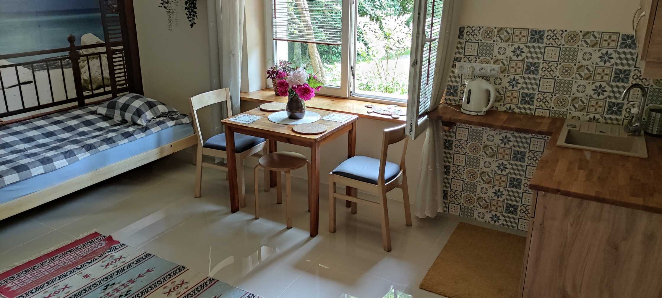 Zapewniamy komfortowy pobyt dla grup do 8 osób w sypialniach wyposażonych w wygodne łóżka i aneks kuchenny.